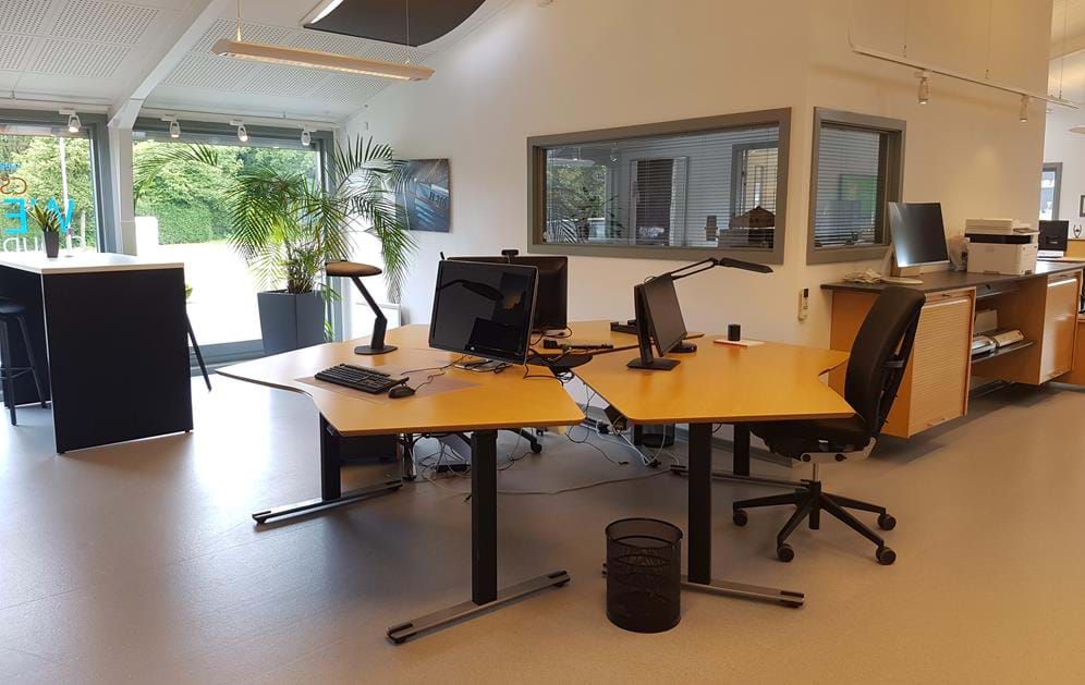 Kontorarbejdsplads m. skrivebord og kontorstol i åbent kontormiljø og inkl. fri brug af mødelokaler efter først til mølle princippet,